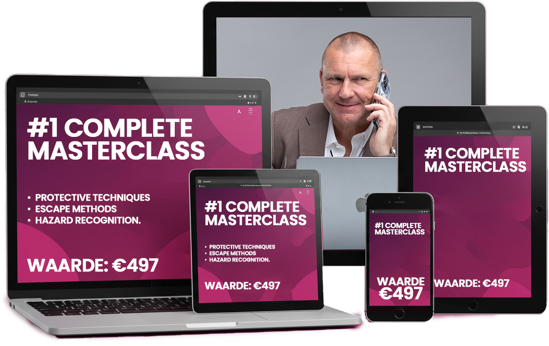 Deze MasterClass onthult het complete beschermingssysteem dat een voormalig professioneel bodyguard in 20+ jaar heeft geperfectioneerd. Dit zijn niet de "schreeuw en ren" tactieken die ze je in andere cursussen leren. Dit is het échte werk. Het complete systeem dat werkt zodra het erop aankomt, van A tot Z.